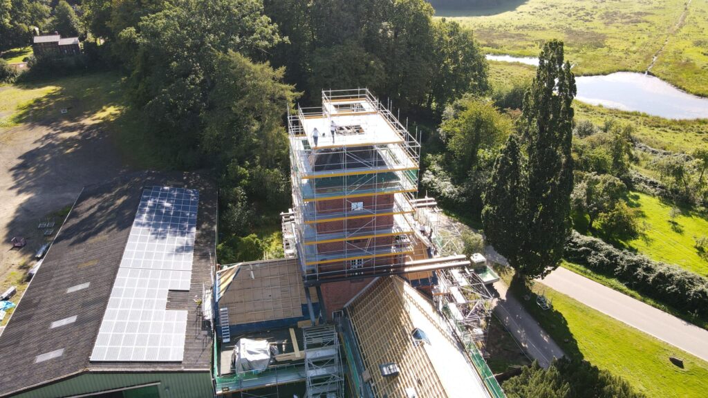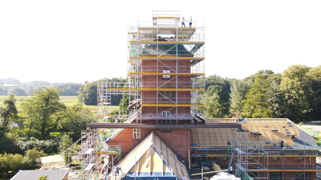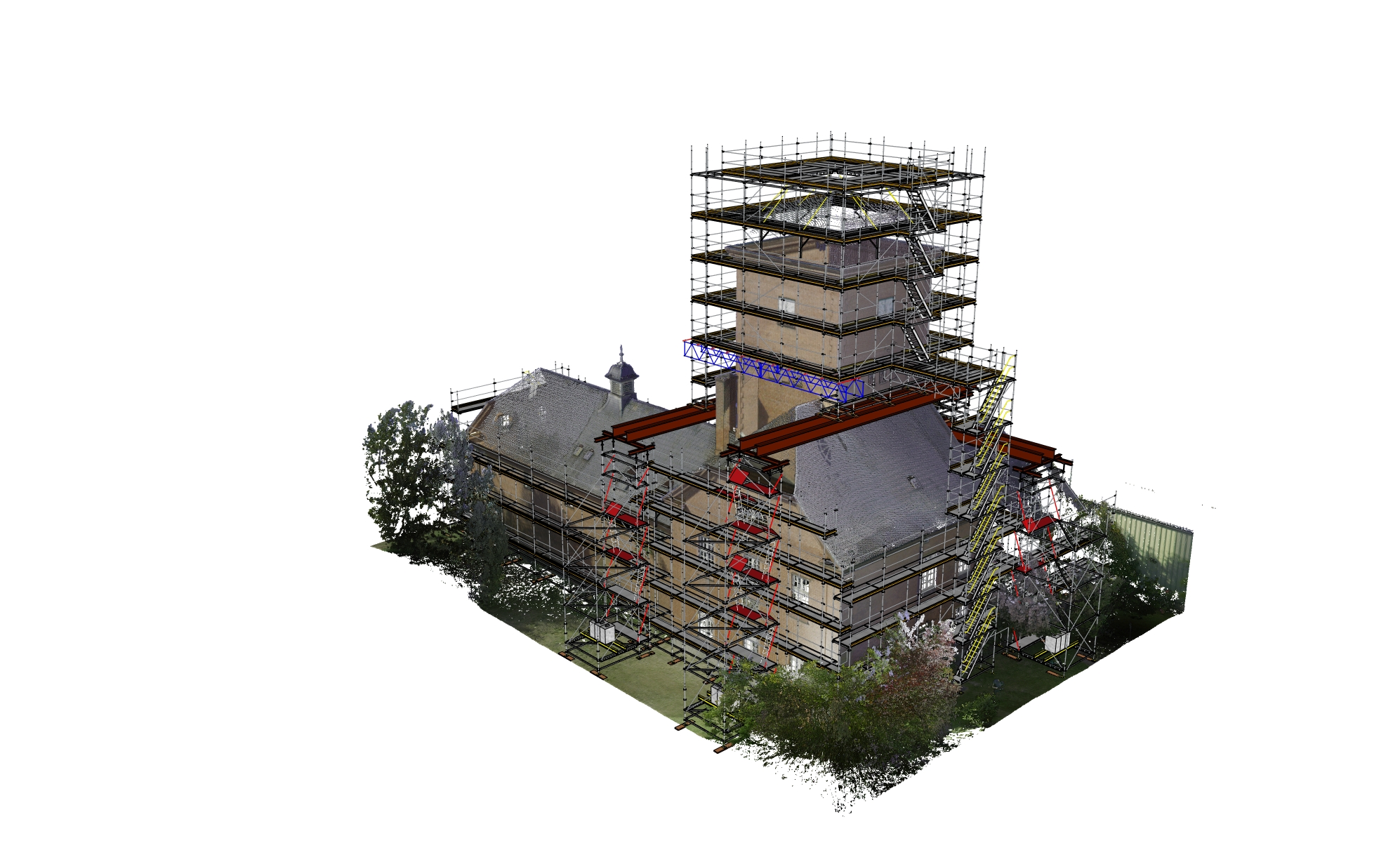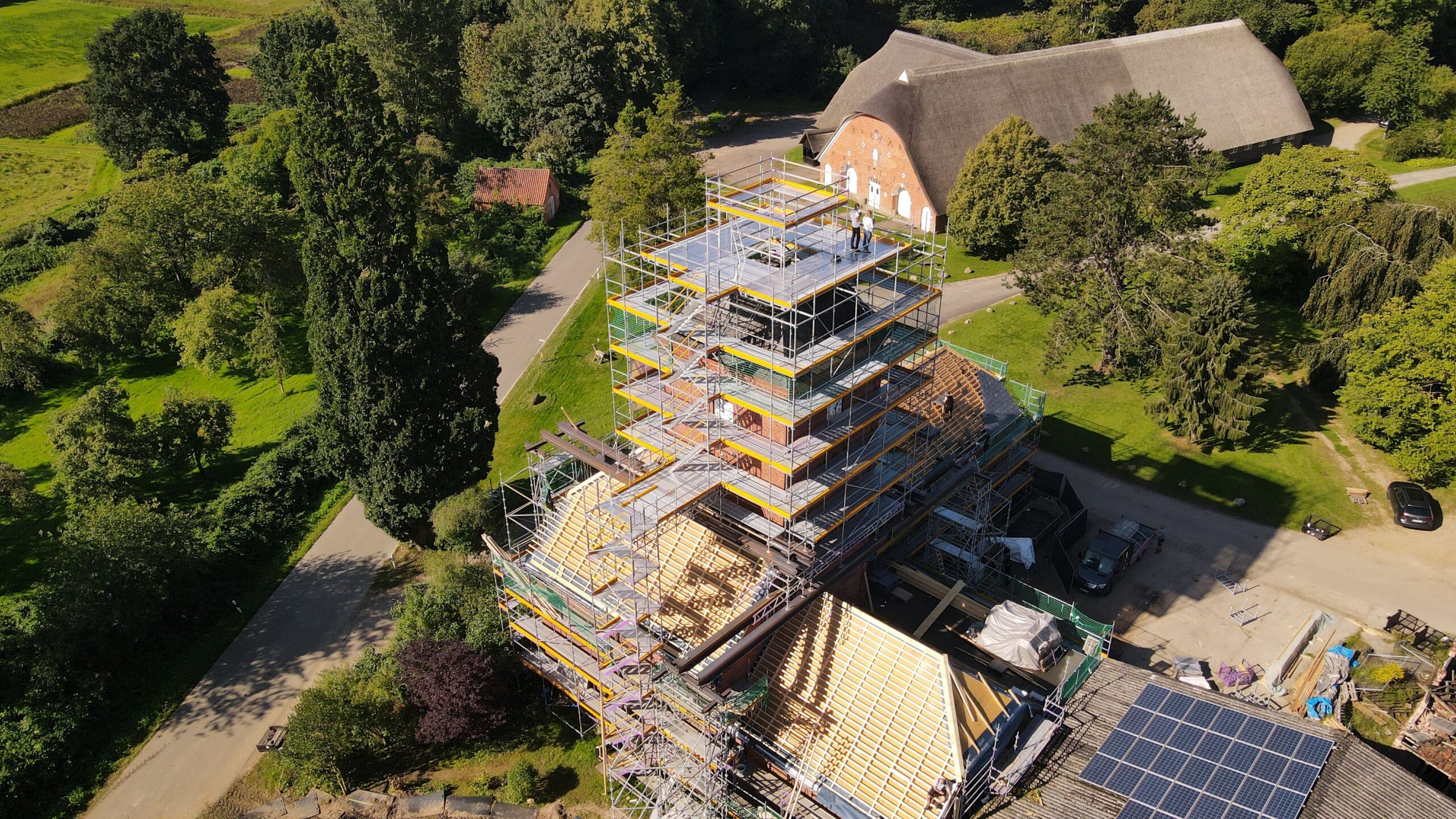 Gut Bossee Projekt Details Auftraggeber:Ort: Bossee Gerüstfläche:Bauzeit: 2025 Gerüstsystem: PERI UP FLEX – Traggerüst, PERI UP EASY Fassadengerüst