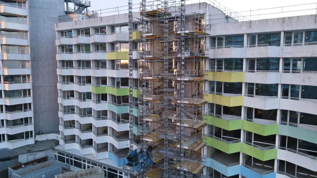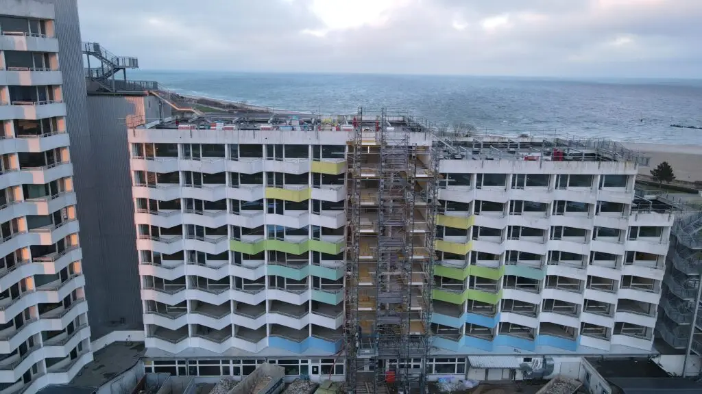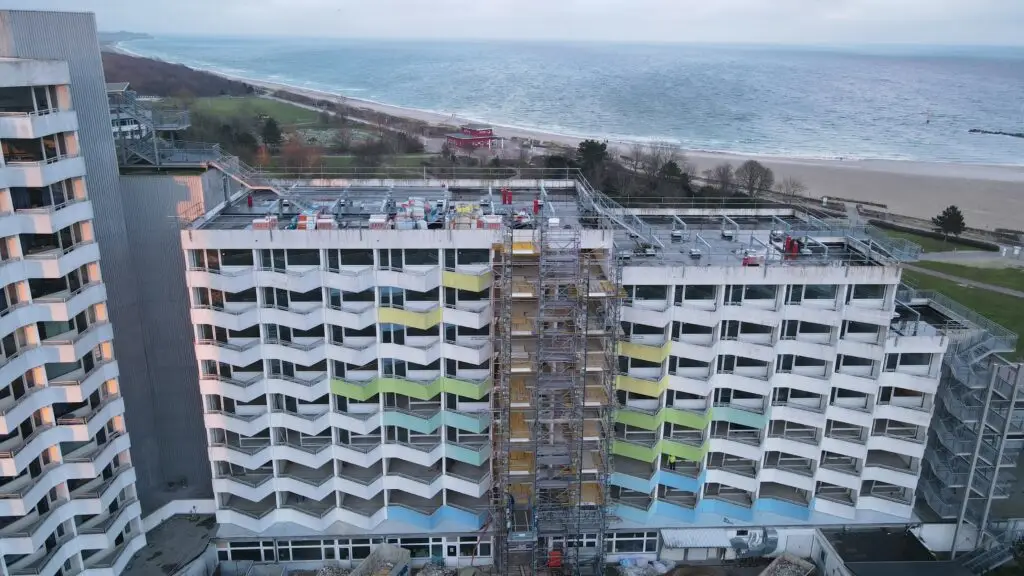 Ostseebad Damp Projekt Details Auftraggeber:Ort: Damp Gerüstfläche:Bauzeit: 2023 Gerüstsystem: PERI UP FLEX – Traggerüst, GEDA 1500 Z/ZP